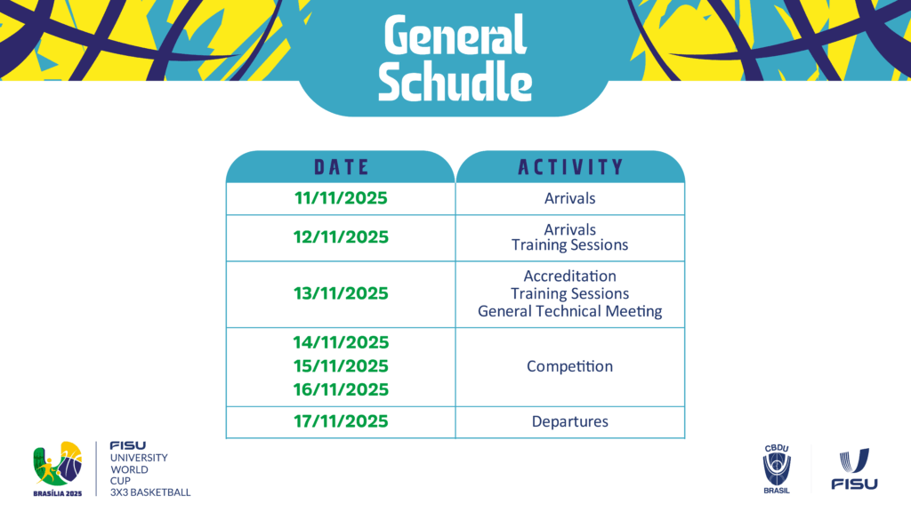 For the Brazilian University Sports Confederation (CBDU), hosting this competition is a true honour. Brasília becomes the stage where the passion for 3×3 basketball meets the talent of university athletes from around the world, celebrating not only sport but also friendship, cultural diversity, and the spirit of university life.