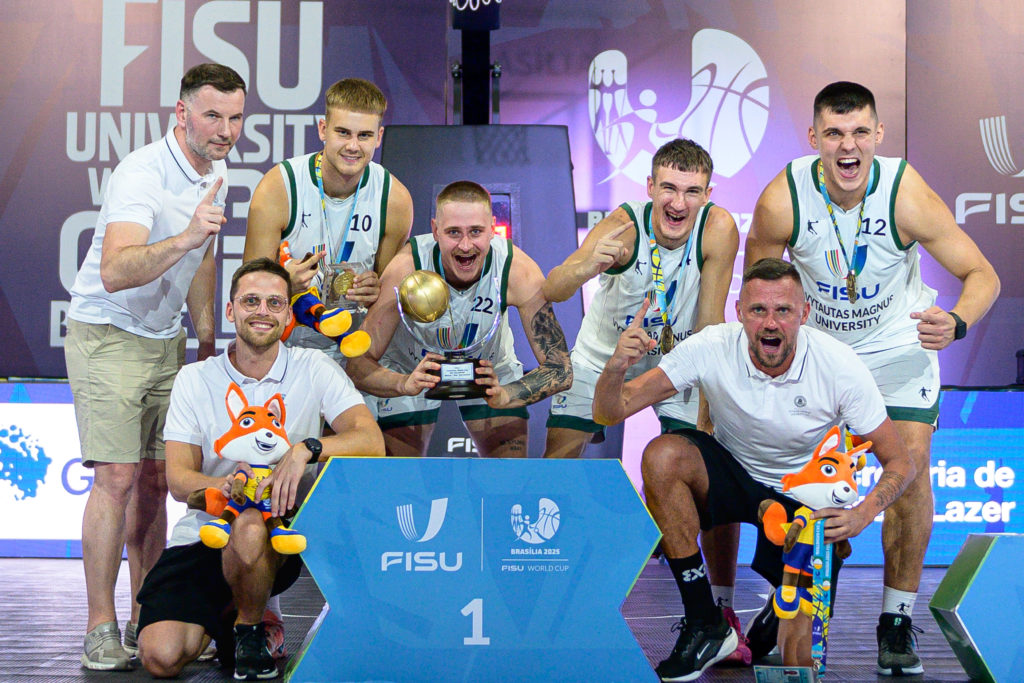 In the men’s competition, Vytautas Magnus University from Lithuania confirmed their status as favorites and lifted the trophy for the third consecutive time, reinforcing their dominance in university 3×3 basketball. The team faced the Brazilian men’s squad from Universidade Paulista (UNIP) in the final, closing the match at 21 to 12 for the Lithuanians.