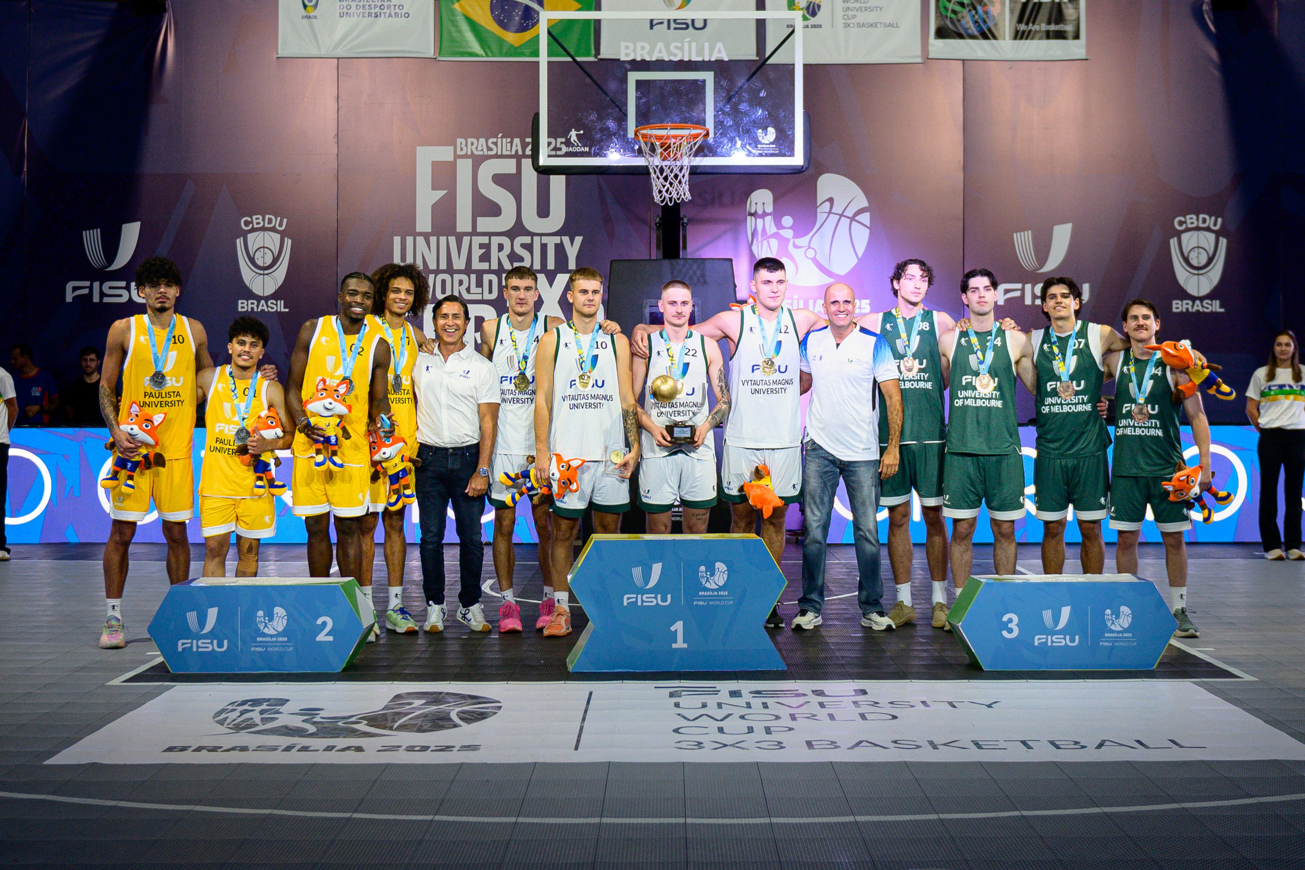 In the men’s competition, Vytautas Magnus University from Lithuania confirmed their status as favorites and lifted the trophy for the third consecutive time, reinforcing their dominance in university 3×3 basketball. The team faced the Brazilian men’s squad from Universidade Paulista (UNIP) in the final, closing the match at 21 to 12 for the Lithuanians.